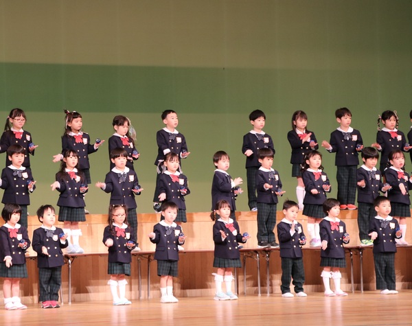 リズム打ちでは、カスタネットで「ドレミのまほう」を演奏♪年少組さんの時よりもレベルアップし、少し難しいリズムもありましたが、みんなの息がぴったり合っていて、とても上手でしたよ👏