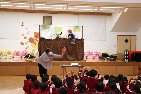 今回は指導員さんが来園!赤ずきんちゃんのストーリーや人形劇を通して「いかのおすし」を勉強しました。人形劇では、お菓子売り場や公園で、知らない人についていきそうになっている男の子や女の子の人形に対し、「だめーー!」と必死に教えてくれていました😌