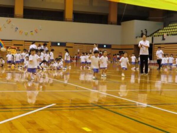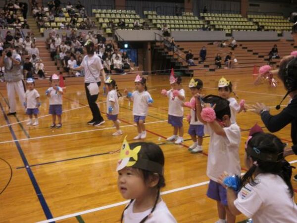 子どもたちが自分で作ったお面をかぶり、かわいいサメに変身して、手足を大きく動かしながら、楽しそうに頑張っていました♪