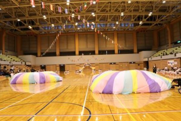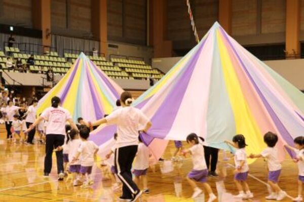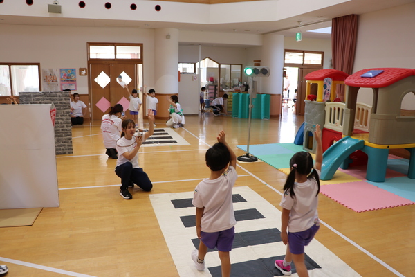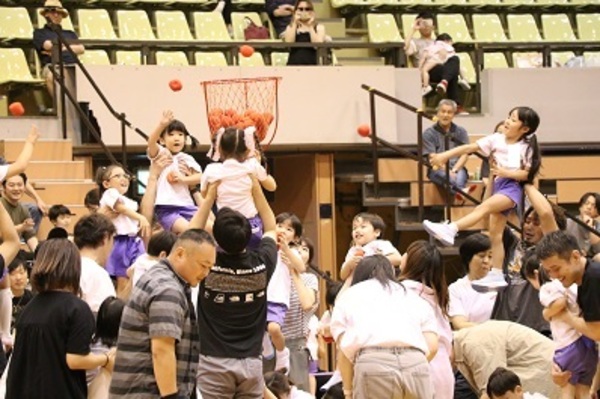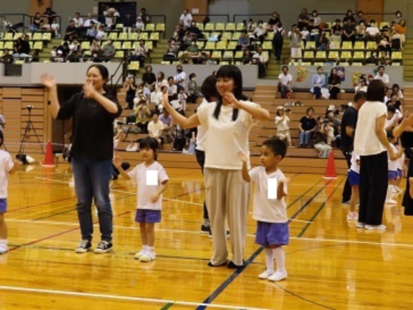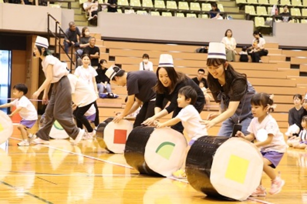 ダンシング玉入れでは、ディズニー夏イベントの曲に合わせ、子ども達も保護者の方もノリノリ♪