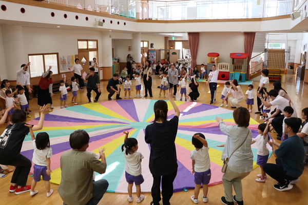 ゲームの後はクラスごとにバルーンにも挑戦!運動会で見せてくれたカッコいい姿を、今日はおうちの人の目の前で見せることができましたね✨保護者の方も全力で楽しんでいてステキでした◎