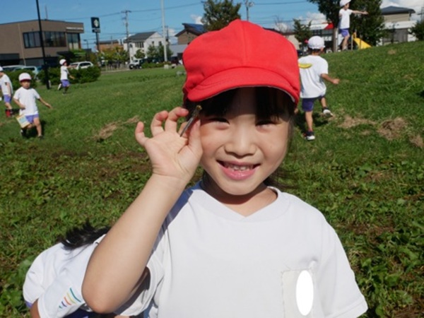 そして、公園に到着!!園庭とは違う大きな山に登ったり、持って行った図鑑を見ながら「この花咲いているかな〜」と探したり、飛んでいる沢山のトンボを捕まえたり…とそれぞれ秋の自然に触れながら楽しんで遊んでいました♡