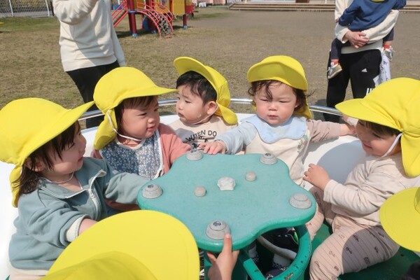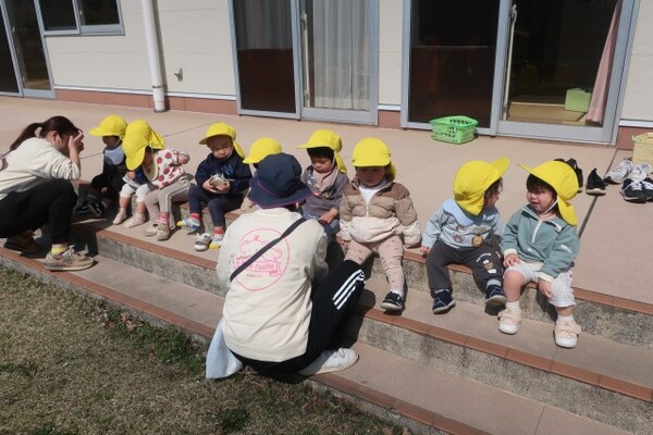 ・午前11時ころからお天気のいい日にはひろばのテラスより園庭に出て