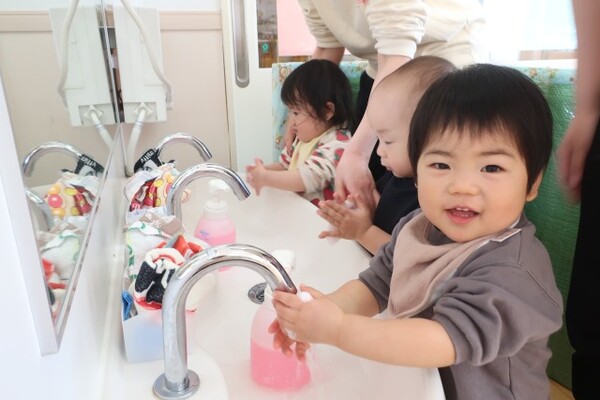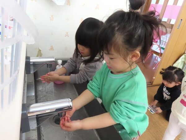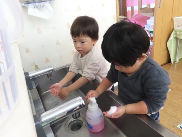 靴を履いてみようとしたり、手をゴシゴシとこすって手洗いをしたり、色々なことに挑戦をしているマドレーヌ組さん✨