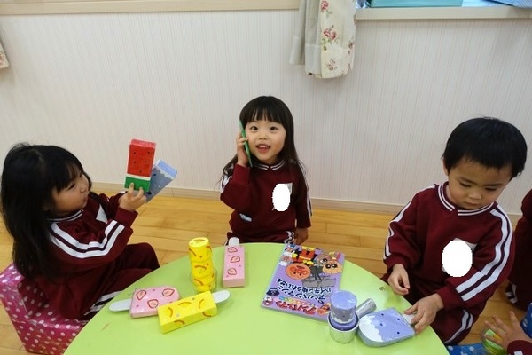 広いお部屋で1日過ごすのは初めてでしたが、不安気な姿は見られず、興味津々で色々なことに挑戦していた子ども達でした💮