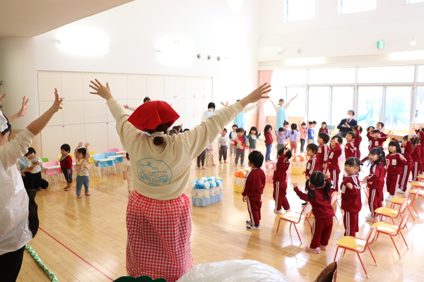 ピアノに合わせて季節の歌を歌ったり、お面をつけて踊りを踊ったりします♪
