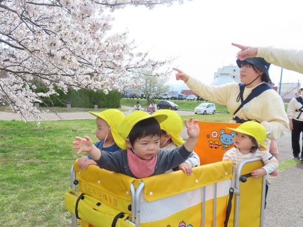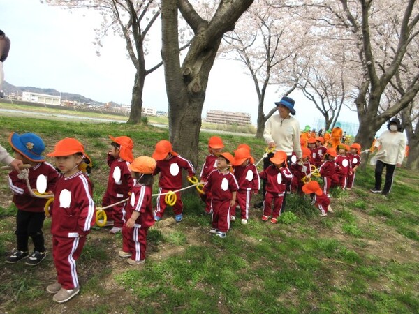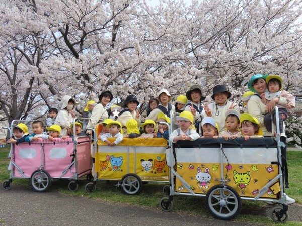 河川敷に着くときれいな桜を見て、「かわいい〜」「お花いっぱいだね」と目をキラキラさせていました👀また、みんなで色々なところにお散歩に行きましょうね💖