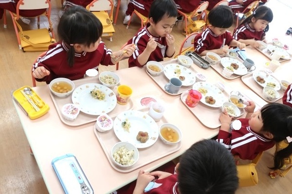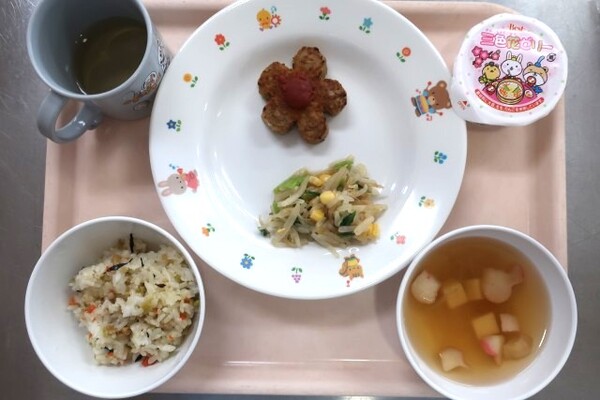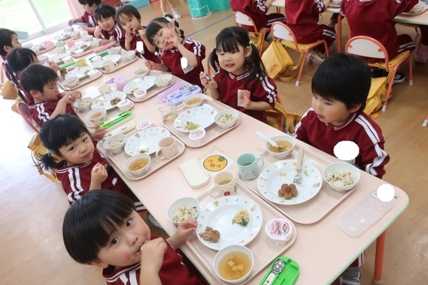 「お花のハンバ〜グ〜!!」「ゼリーおいし〜♡」と子どもたちの喜ぶ声がよく聞こえた給食!!