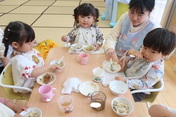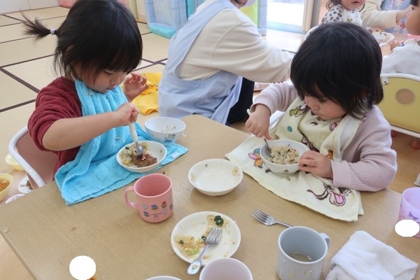今日はショコラ組さんで、給食を食べたり、お昼寝をしたりしました。