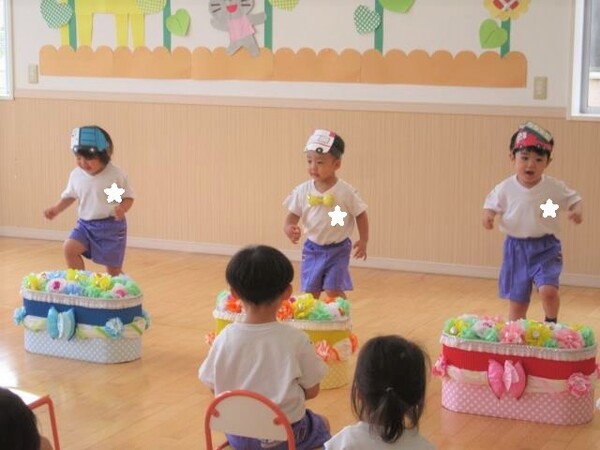 踊りは、「はたらく車」を披露してくれたマカロン組さん。お面は、それぞれ自分の好きな車を選びました♪